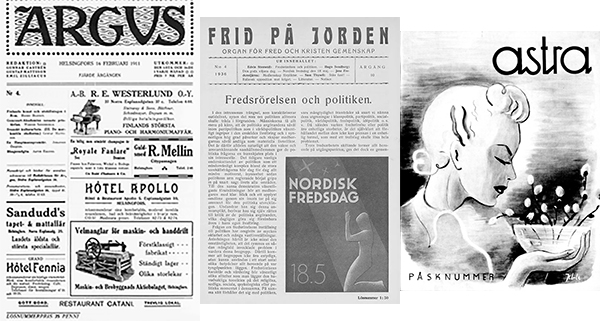 Bland de äldsta tidskrifterna kan nämnas Martha, grundad 1903 (tidigare Husmodern, senare Marthabladet), Eos (1893), Frisk Bris (1899), Scoutposten (1918), Astra (1919) och Nya Argus (1907).