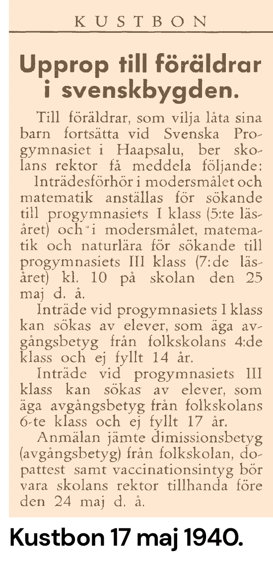 Men först. 1920-talets Estland präglades av progressiva minoritetslagar som tryggade autonomi för den svenska, tyska, ryska och judiska minoriteten. Det innebar bland annat att man hade rätt att grunda skolor på att eget språk och få finansiering för det. Som mest fanns det ett tjugotal svenska skolor i Estland. Men det hjälpte föga att staten Estland hade förståelse för sina minoriteter eftersom flera länder hade ögonen på Estland och absolut inget intresse av att bejaka minoriteters rättigheter.