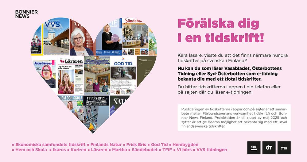 Det här är ett av många sätt att skapa synlighet och hitta ny publik för de finlandssvenska tidskrifterna. Bonnier News Finland (tidigare HSS Media) ger ut tidningarna Vasabladet, Österbottens Tidning och i alla tre kan man läsa tidskrifter gratis i tre månade framåt i deras appar eVbl, eÖT och eSydin. När pilotperioden är slut kommer samarbetet att utvärderas och data som samlats in av Bonnier News kommer att analyseras.